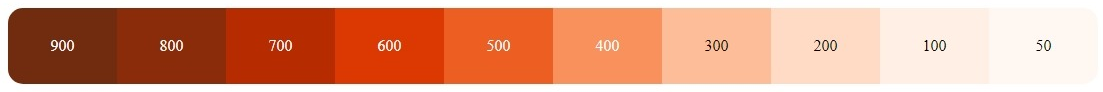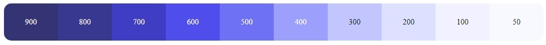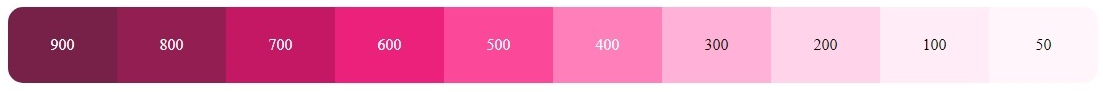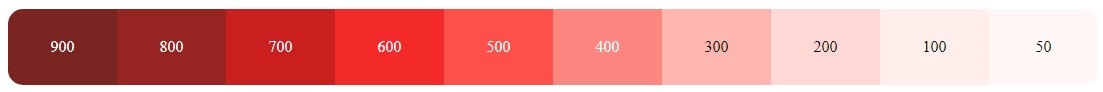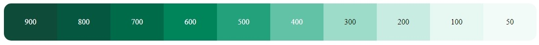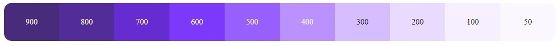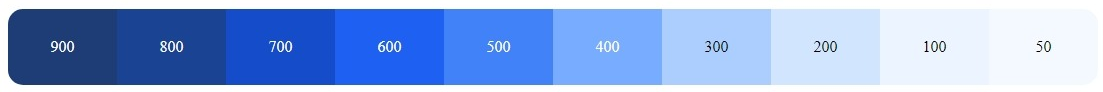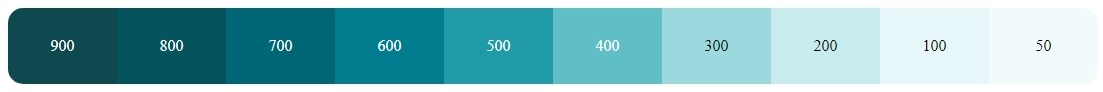 To obtain a specific color from a gradient, Envison uses the standard blue/700 syntax used in many design systems, where the hue is followed by a number between 50 (lightest) and 900 (darkest).